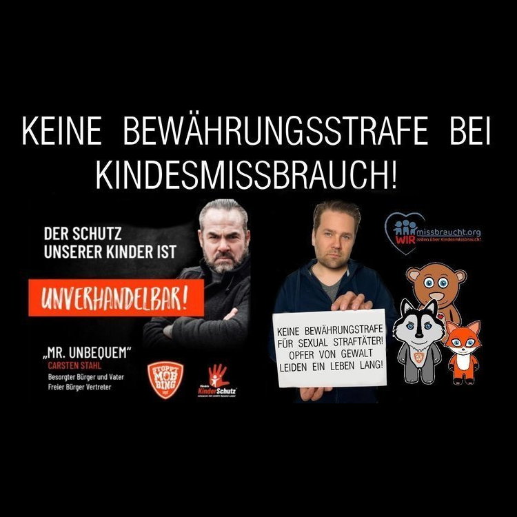 Björn und Carsten Stahl haben diese Petion im August 2020 gestartet. Menschen die Kinder sexuell Missbrauchen, dürfen keine Bewährungsstrafe mehr bekommen. Bitte mache mit und unterzeichne diese Petition. Danke!